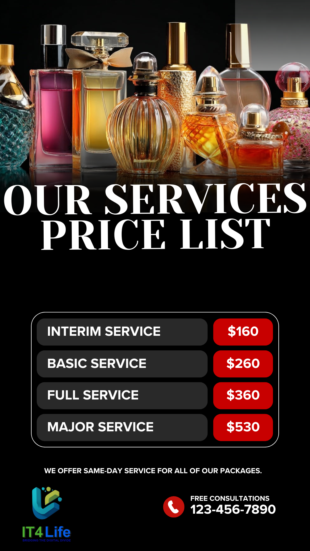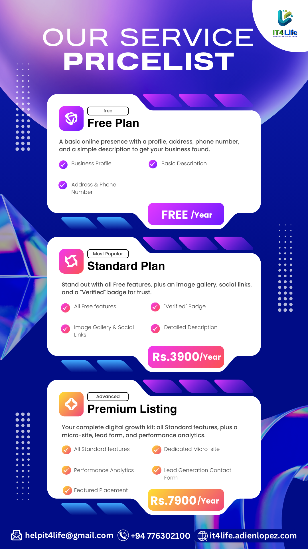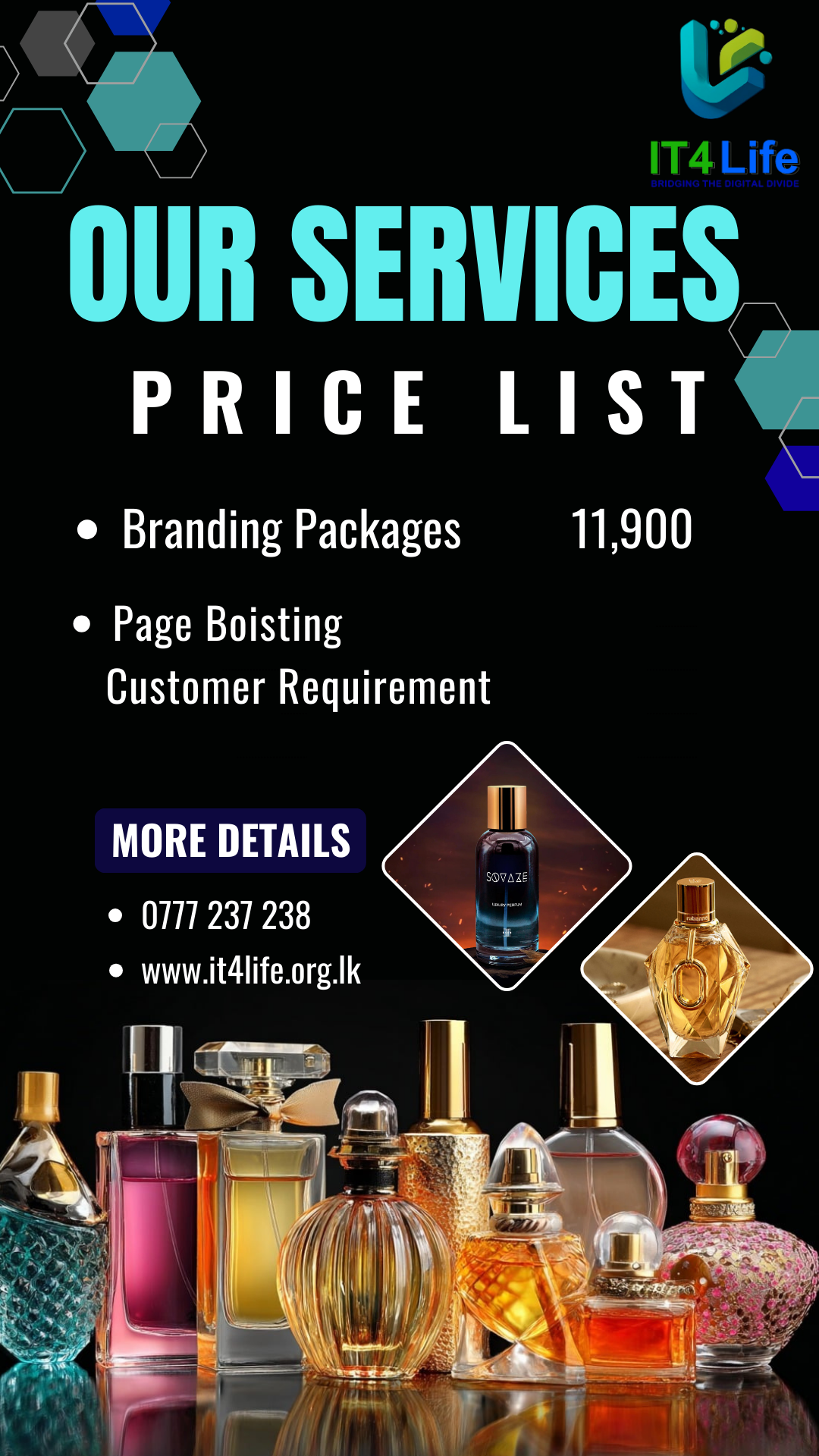 This template is a creative and modern pricing list for a service-based business, such as a digital marketing agency, graphic designer, or software company. It's designed to be used on social media platforms like Instagram or Facebook.